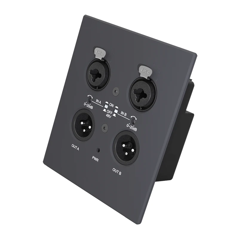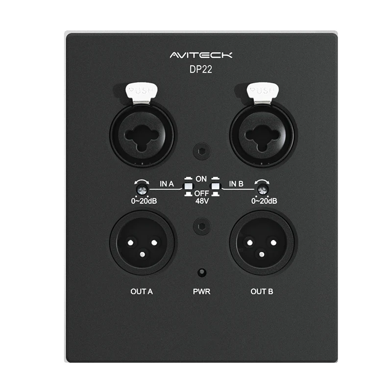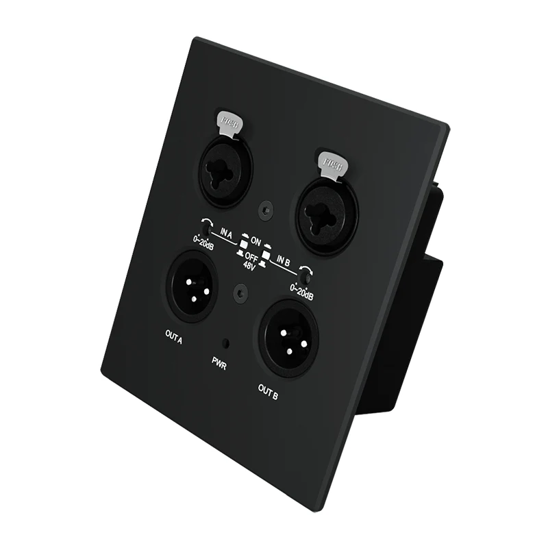FHBAVTEC® Dante 2 CH Қабырғалық тақтайша Желілік аудио интерфейс (DP22) конференциялар бөлмелерінде, тежеленген залдарда, театрларда, театрларда, диссертацияларда, конгрестер орталықтарында, алдын-ала жасырылған кіріс және шығыс интерфейстерімен пайдалануға жарамды. т.б.